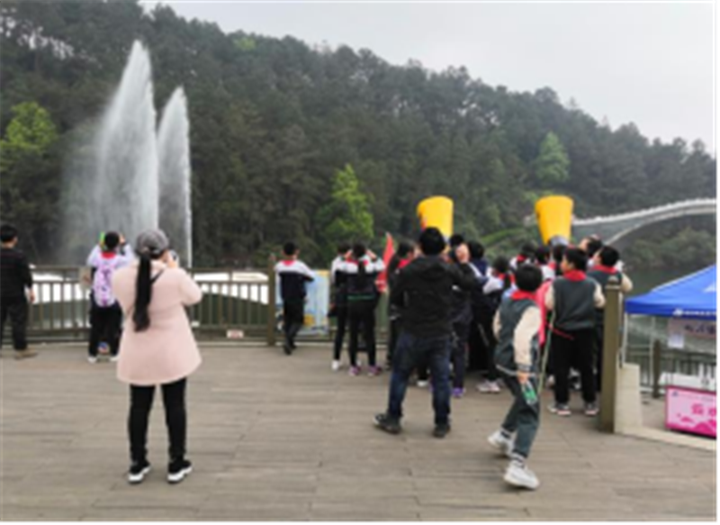 3月26日上午,尖山风景区迎来了一批特殊的客人—沿滩区联络镇新和小学30名师生来到尖山风景区,开展春游踏青校外实践活动。